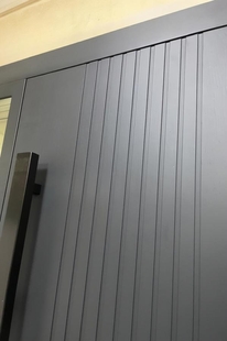 Входная термодверь с остекленной боковой вставкой, бугельной ручкой и серыми панелями МДФ антрацит — это надёжная защита и эстетика в одном решении. МДФ-панели не выгорают на солнце и устойчивы к царапинам. Подчёркивают контраст или плавность перехода между материалами. Отделка дополняет экстерьер и подчёркивает статус владельца.