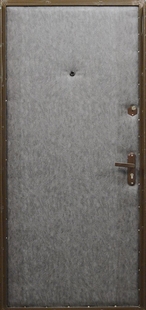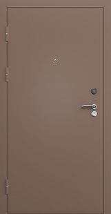 Стальная дверь с коричневыми плитами МДФ и длинной черной ручкой с подсветкой
